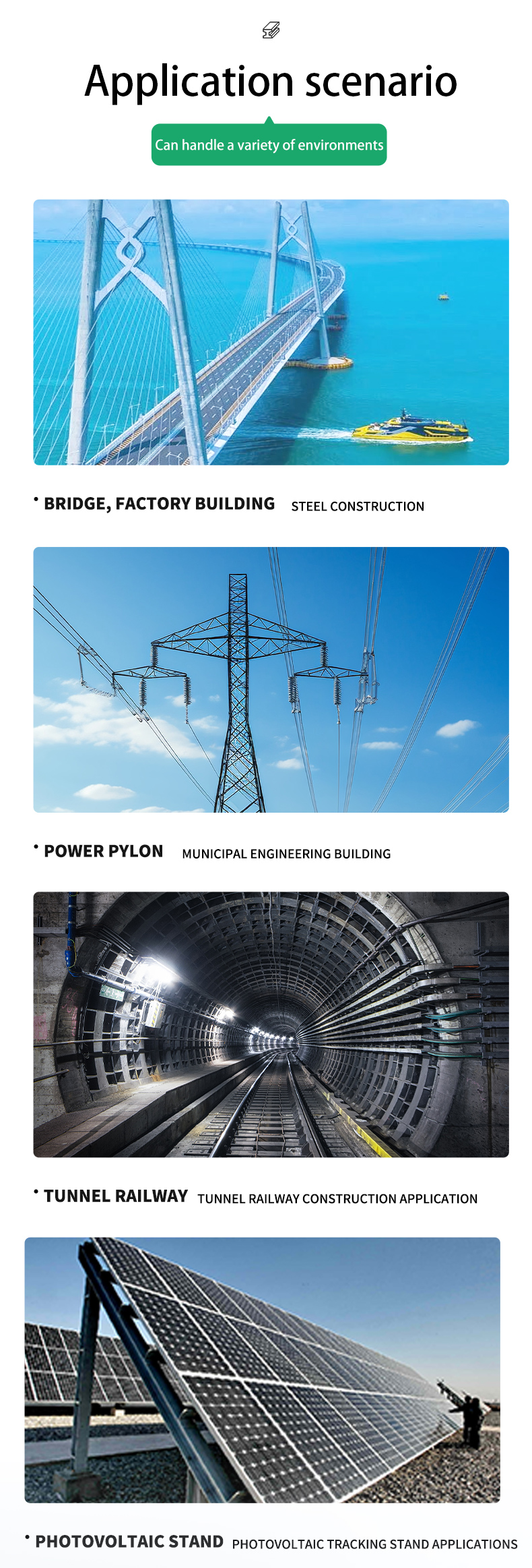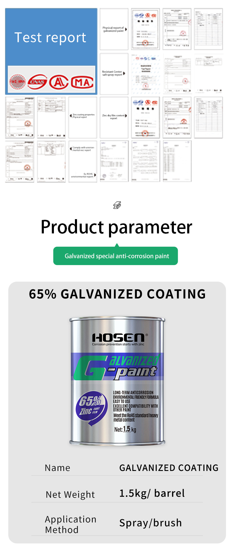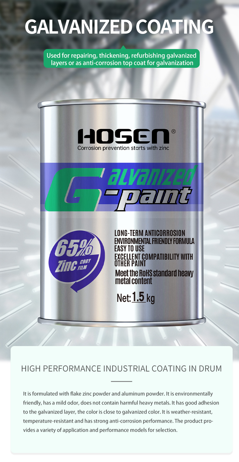 Used for repairing, thickening, refurbishing galvanized layers or as galvanized finish cost for anti-corrosion.