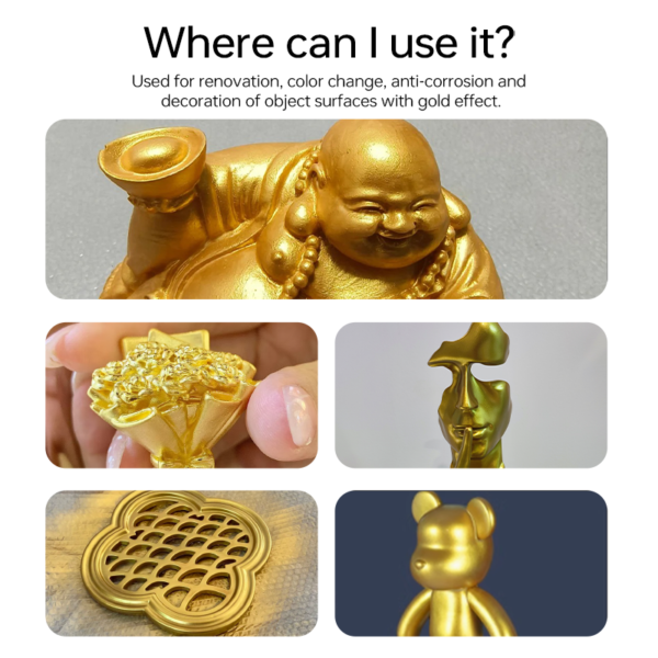 Used on object surface with gold effect for for renovation, color change, anti-corrosion and decoration.