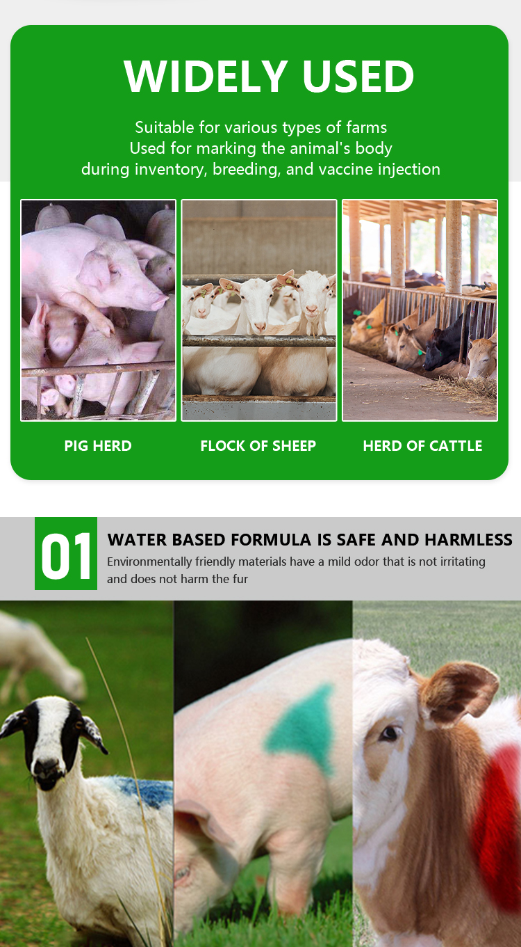 Used on animal body for color marking.