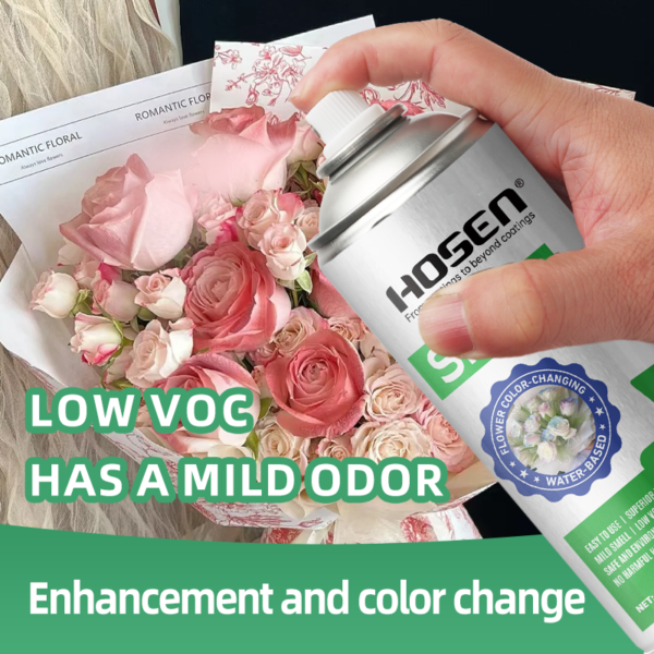 It does not damage flower materials and is water-resistant. It is a water-based and environmentally friendly color-changing spray.