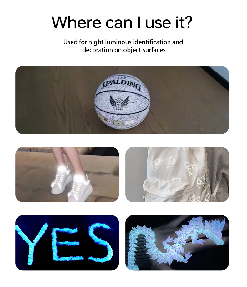 Used for night luminous identification and decoration on object surfaces.