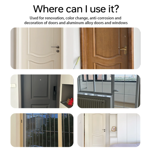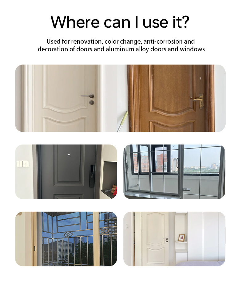 Used for renovation, color change, anti-corrosion and decoration of doors and aluminum alloy doors and windows.